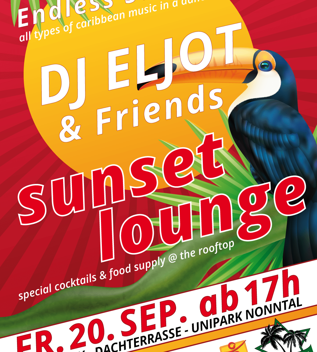Diese Sunset Lounge wird wieder etwas spezielles. Auf der Dachterrasse des Uniparks in Nonntal bringen wir die warmen Sommerstunden retour mit viel heisser Musik und illustren Gästen. Am 20. September ist der Tag gerade noch länger als die Nacht und wir stellen wieder ein zauberhaftes Programm zusammen zum Chillen aber auch für die Mover unter Euch.