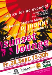 Wir sind auch im August wieder bei DJ Jhonny von Latino Mio eingeladen und nach den Tanzkursen des Tages gibts wieder ein exklusiv tanzbares DJ-Set im Markussaal in der Gstättngasse 16, gleich hinterm Haus der Natur.