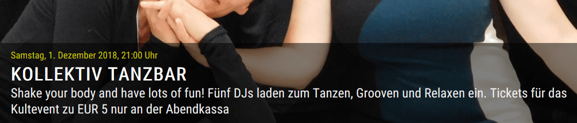Salsa dura, Salsa brava, Salsa choke, Salsa urbana, Salsa romantica und dazu noch Bachata, Cumbia, Merengue, Reggaeton und natürlich Kizomba vom Feinsten … Caribean Flow, lateinamerikanisch – der Appell kommt durch die Lautsprecher auf die Tanzfläche, egal ob Paartänzer oder freie Mover – hier sind alle erlaubt und erwünscht.